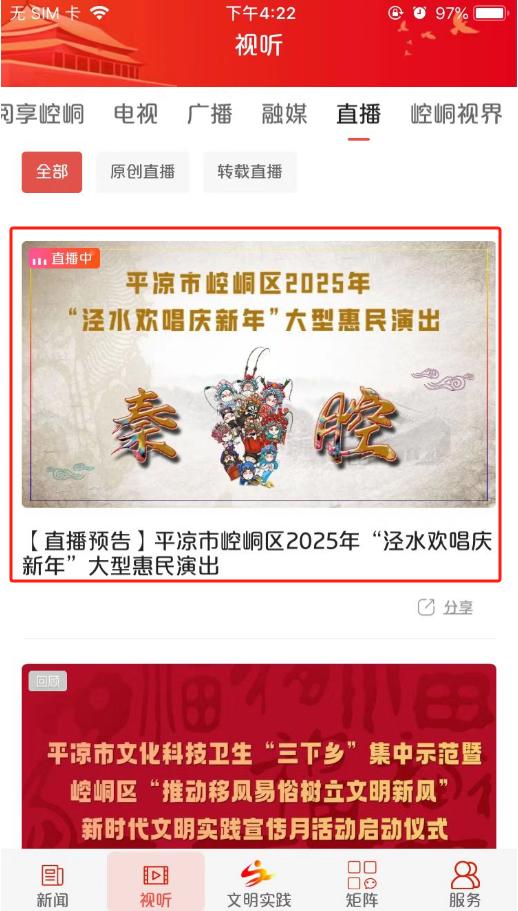 方式六:关注“崆峒发布”微信公众号,即可观看视频号直播