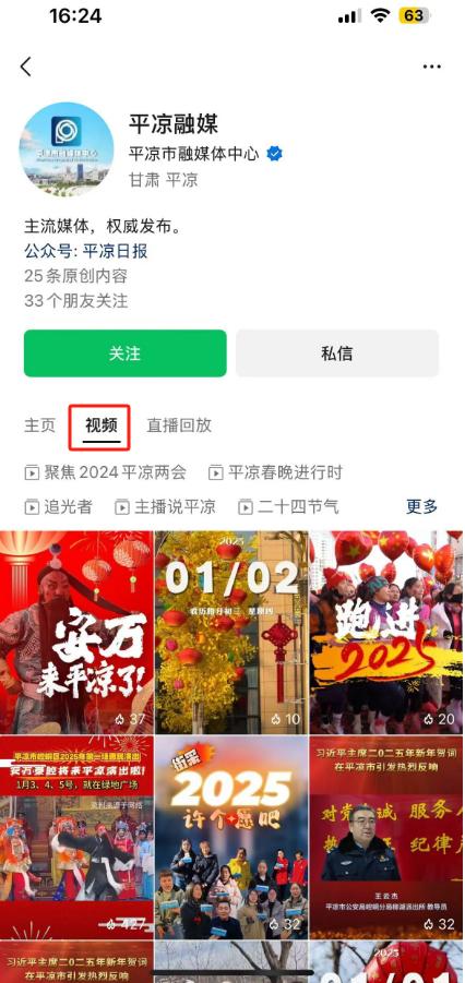 方式三:关注“平凉融媒”微信公众号,即可观看视频号直播