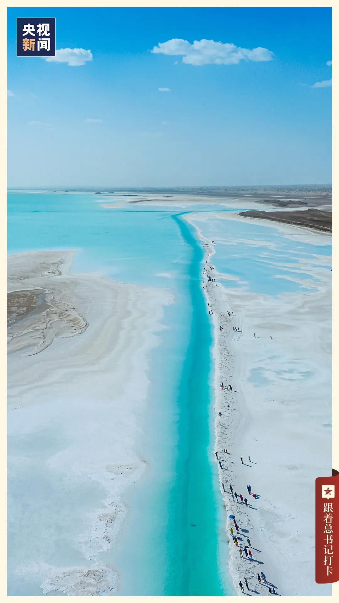 柴达木盆地内的东台吉乃尔湖,湖水在阳光的照耀下呈现出蓝色调,大片的洁白盐地如同奶油冰激凌融化,神奇而艳丽。