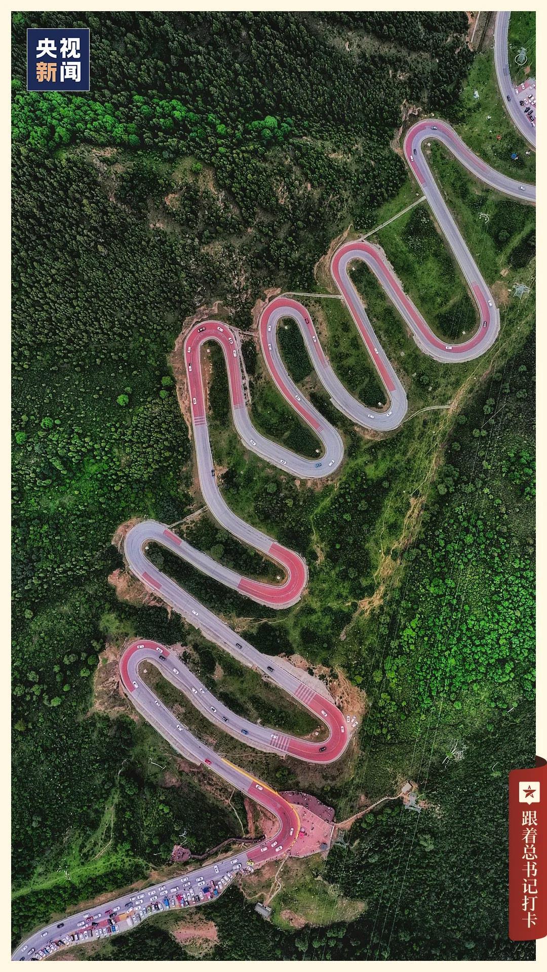 青海互助县的十二盘坡因有十二个拐弯而得名。蜿蜒曲折的公路盘踞山间,宛若游龙,腾跃于锦绣大地之上。
