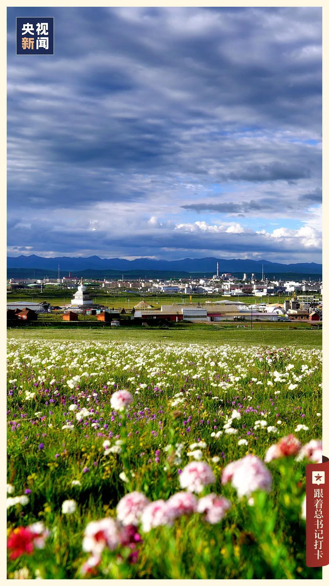 西宁西北部的海北州金银滩草原,在鲜花盛开的时节,宛若被斑斓的地毯覆盖。