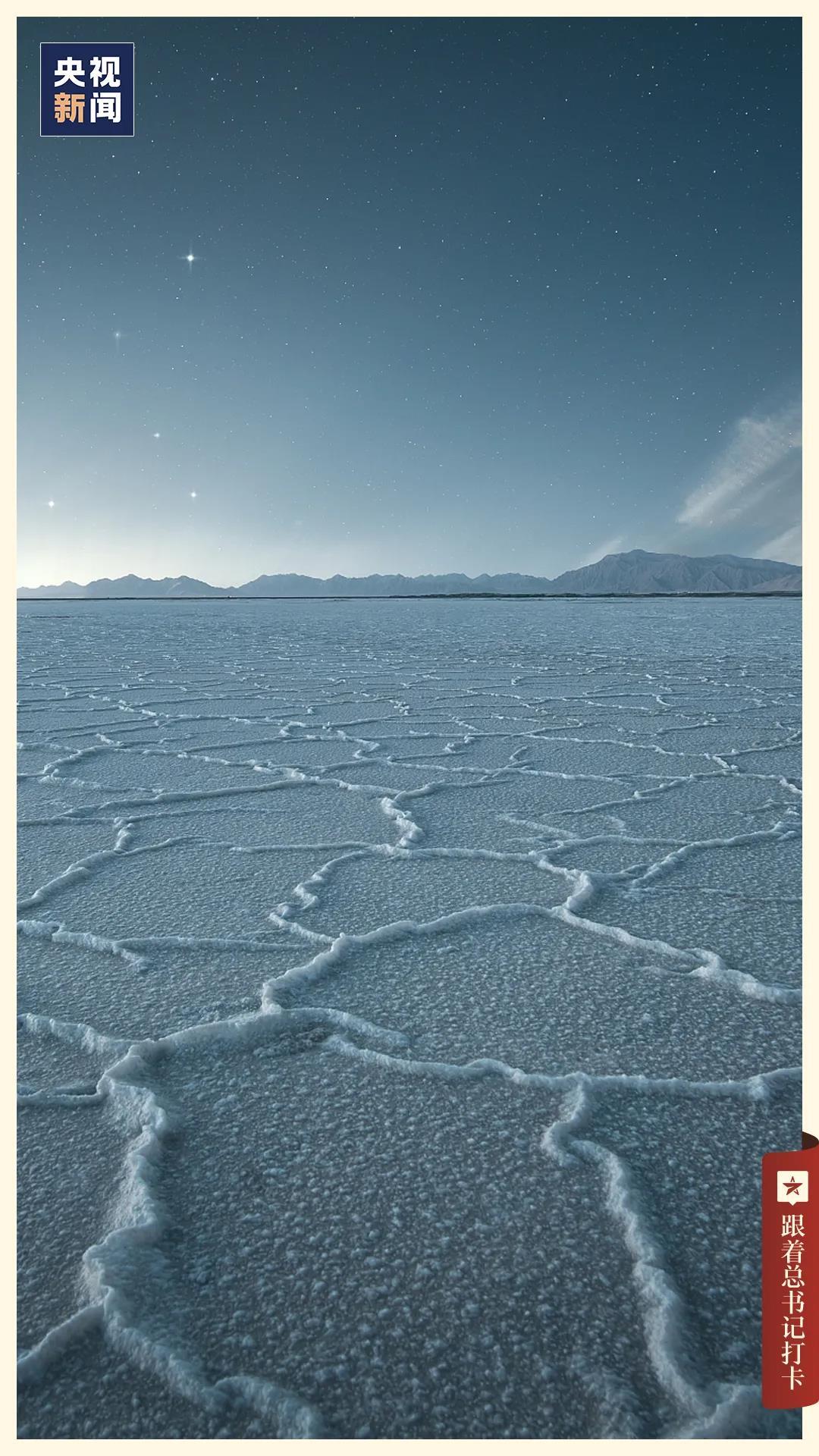 柴达木盆地的察尔汗盐湖,长期经受风吹日晒,高浓度卤水中分解出锂、镁、钾等元素,结成盐钟乳,形成丰富多彩的盐喀斯特地貌。作为中国最大的盐湖,察尔汗盐湖各类盐资源总储量达600亿吨,是我国最大的钾肥生产基地。