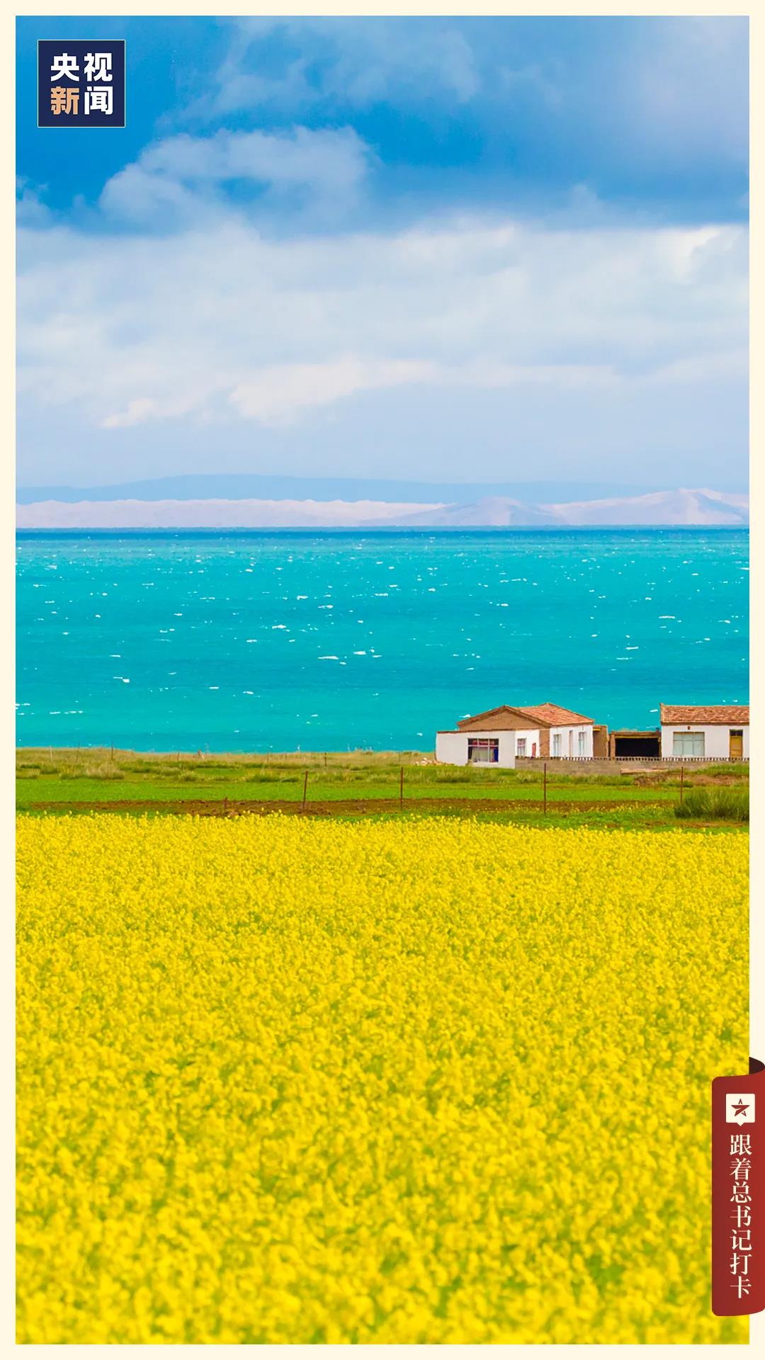 当青海湖边油菜花绽放,水鸟飞舞,牛羊漫步,让这里有了最明艳的黄和最纯粹的蓝,每一帧都像是一幅油画。
