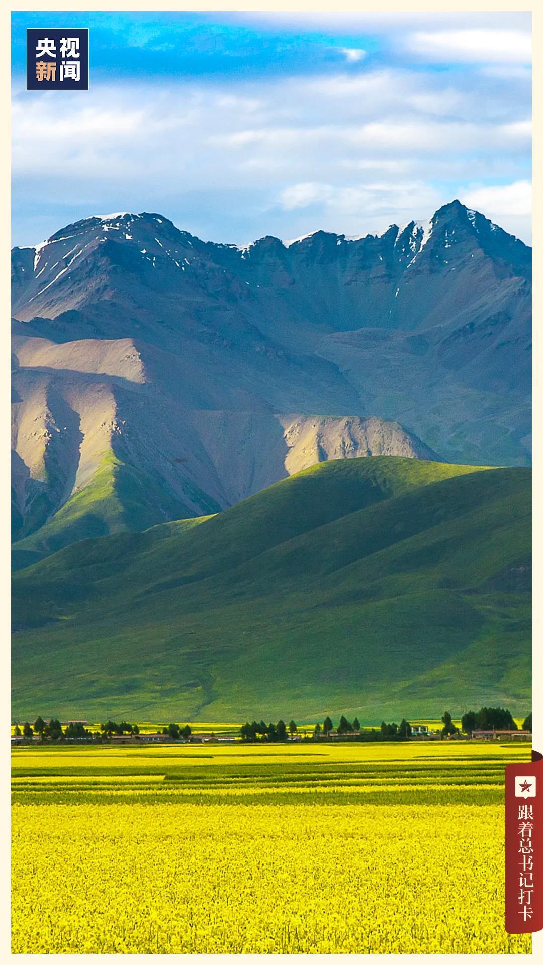 油菜花的金黄、祁连山的苍翠