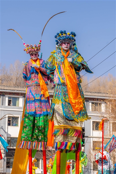 在湟中区徐家寨,新一辈的年轻人有朝气有活力,在一米多高的高跷上玩出了许多新花样,穿着什么样的行头就有什么的走法,扮着什么样的角色就有什么样的演法,有功夫的甚至还能踩着高跷翻跟头。