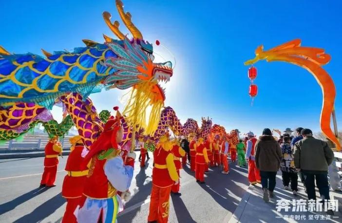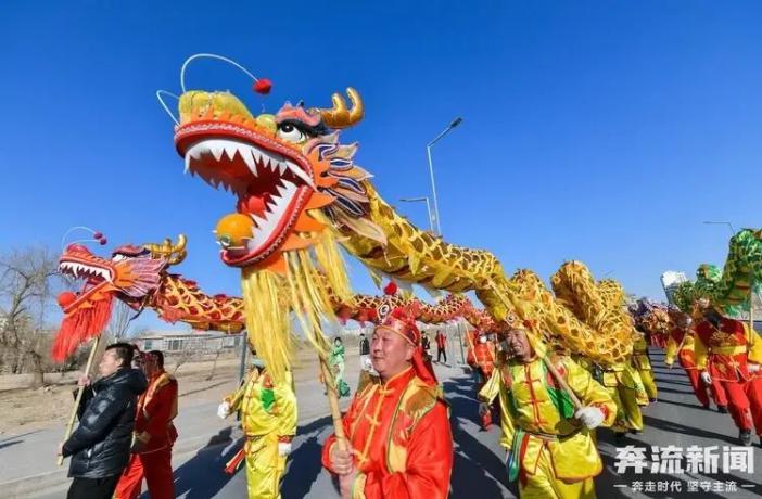 春节期间,敦煌市组织城乡9支社火队在城区开展社火展演活动,让市民游客近距离体验感受敦煌民俗文化的独特魅力,营造红红火火、热闹喜庆的节日氛围。