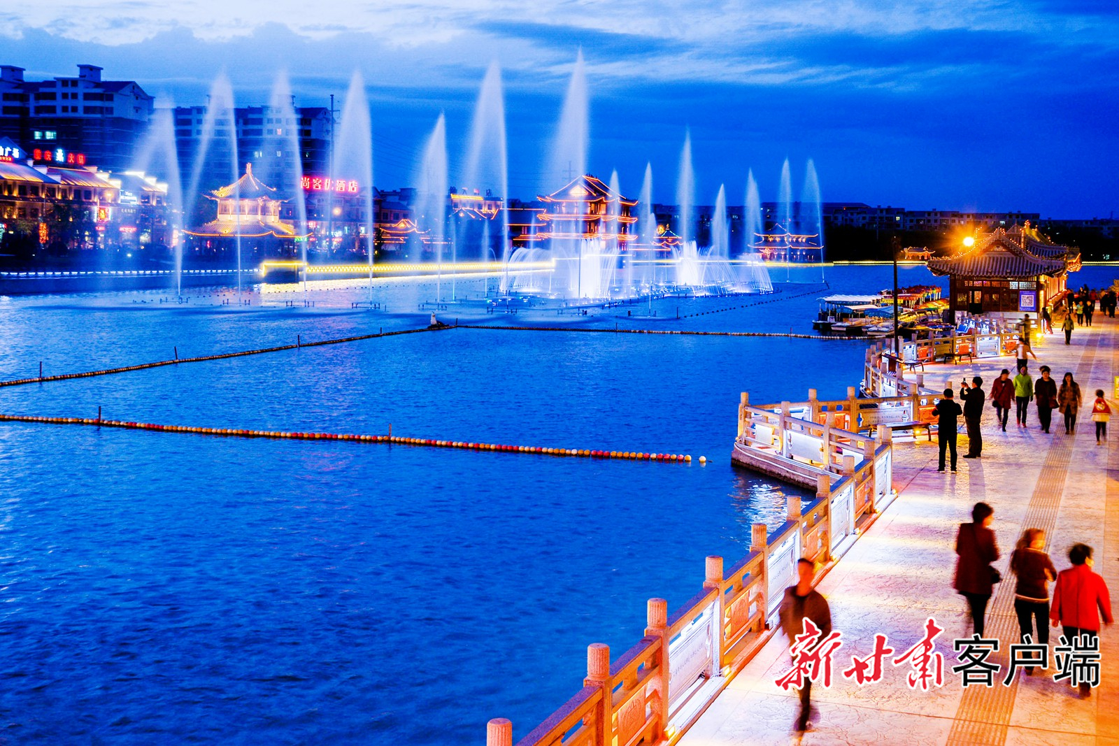 党河风情线成为市民游客休闲好去处。新甘肃·甘肃日报通讯员王斌银摄