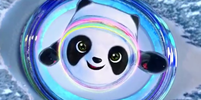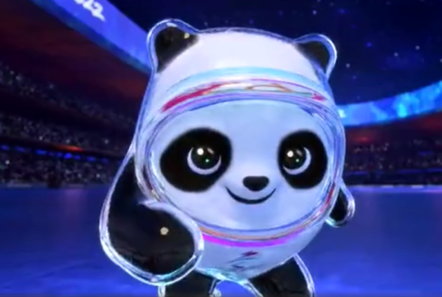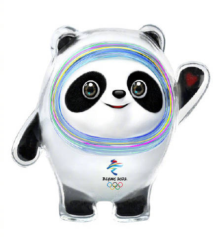 吉祥物以熊猫为原型进行设计创作,将熊猫形象与冰晶外壳相结合,体现了冬季冰雪运动特点。熊猫头部装饰彩色光环,其灵感源自于北京冬奥会的国家速滑馆——“冰丝带”,流动的明亮色彩线条象征着冰雪运动的赛道和5G高科技;头部外壳造型取自冰雪运动头盔。