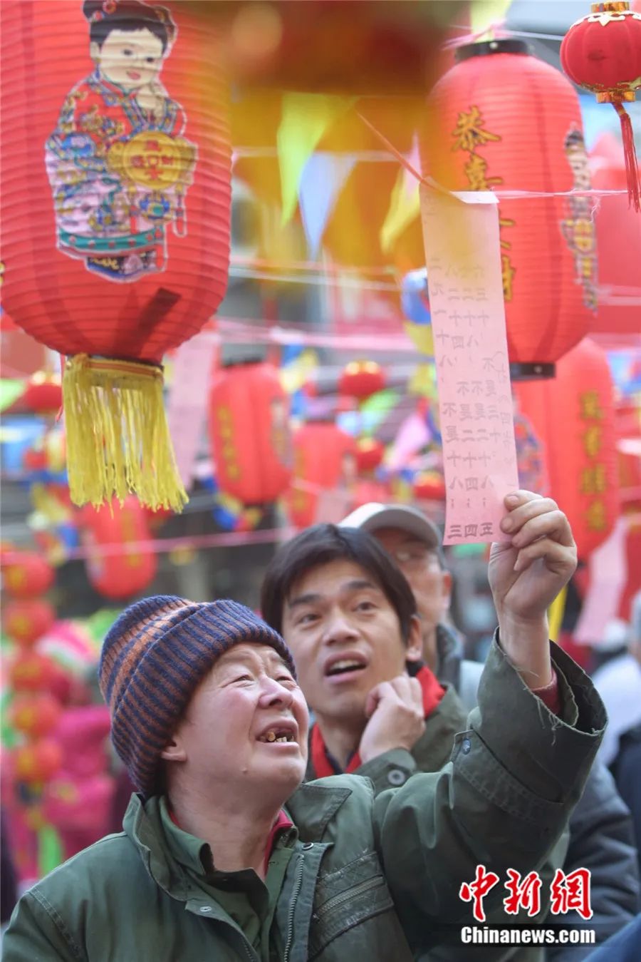 2003年元宵节,北京市民在隆福寺大街猜灯谜。史利 摄