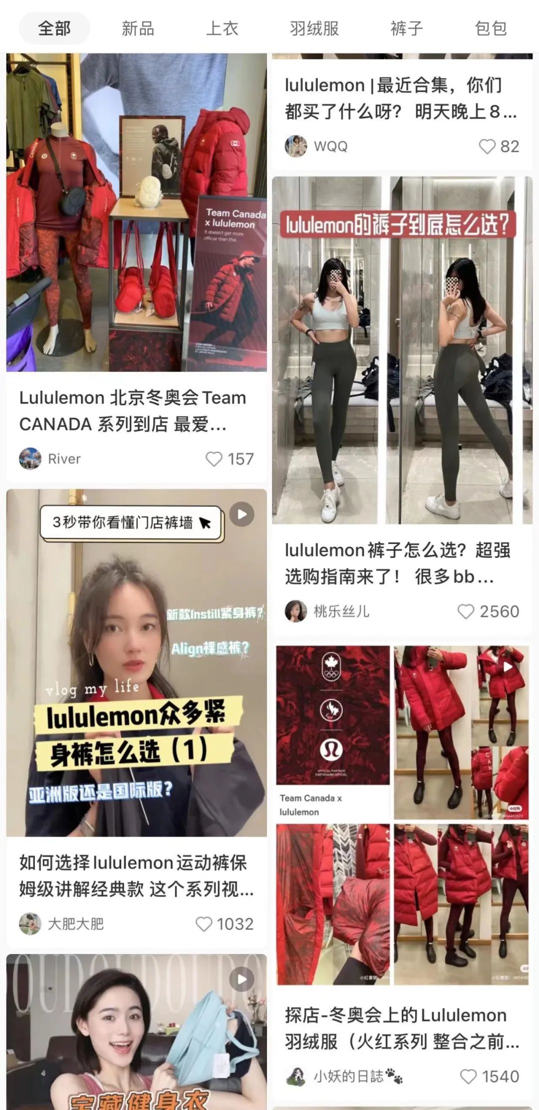 在小红书上,也充斥着大量“加拿大队服代购”、“Lululemon北京冬奥羽绒服”等关键字的种草笔记。有博主晒出同款队服、穿搭笔记,甚至加拿大本地销售店铺地址等。