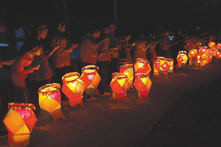 每年元宵节,海口市琼山区府城的传统花灯展,总能吸引不少市民和游客驻足观赏。海南日报记者 张茂 摄