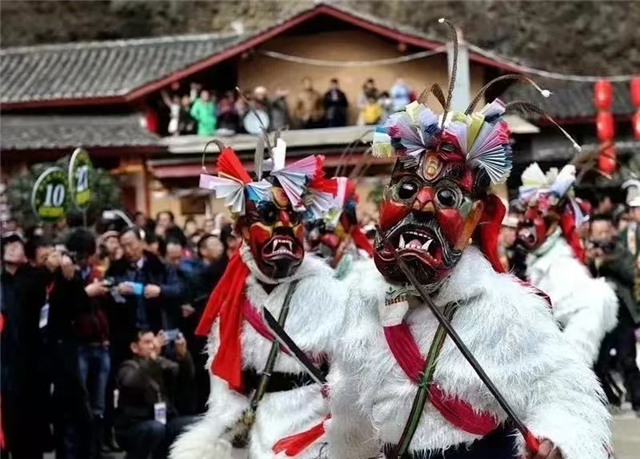 文县池哥昼俗称“鬼面子”或“跳曹盖”,是生活在白马山寨的少数民族生活中一种古老独特、原始古朴的群体祭祀舞蹈,被列入第一批国家级非物质文化遗产保护名录。池哥昼面具舞由池哥、池姆和知玛组成,既原始古朴、粗犷豪放,又充满了神秘的宗教气氛和浓郁的娱乐色彩。