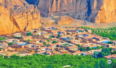 在甘肃省白银市,自西向东的黄河在景泰县拐了个弯,形成两片绿洲,龙湾村就坐落其中。村子一边是令人称奇、连绵不绝的戈壁,一边是阡陌纵横、绿意盎然的田家农舍,龙湾村在山水环抱下更显精巧。