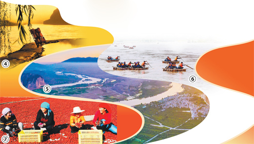 图⑥:游客们在龙湾村附近乘坐羊皮筏子。