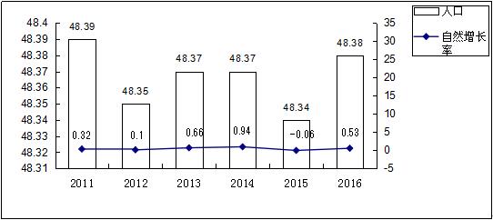 2011-2016年年末户籍人口及增速