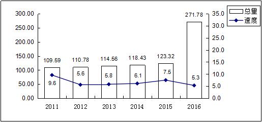 2011-2016年工业增加值及增速