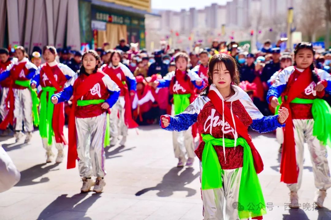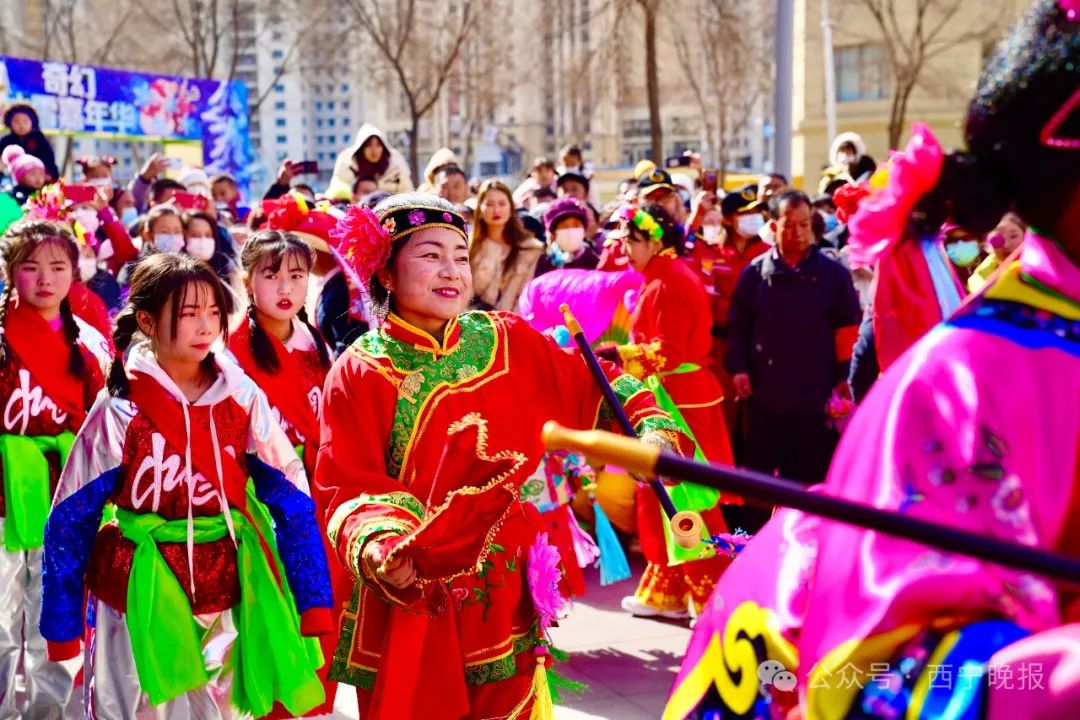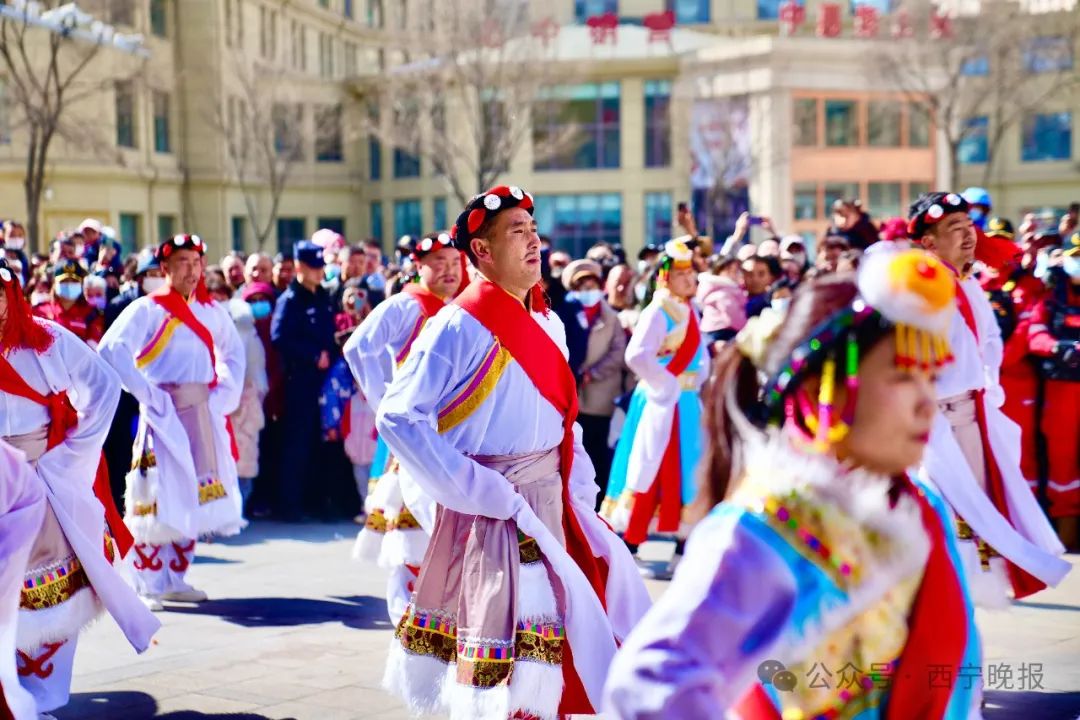 “打起鼓、敲起锣,欢天喜地过大年。”社火表演现场,表演队员们身着盛装,精神抖擞,神采飞扬,踏着欢快的鼓点尽情表演,笑意写在脸上,喜庆荡漾心间。伴随着阵阵锣鼓声,社火演出正式开始,现代舞、藏舞、扇子舞等欢乐喜庆、年味十足的社火表演纷纷亮相,让现场观众大饱眼福。“攒劲!”“好!”活动现场热烈非凡,喝彩声、欢笑声、锣鼓声不断,观众或拿出手机记录这精彩的瞬间,或抱起孩子共享这欢乐时光,处处弥漫着欢乐祥和的氛围。
