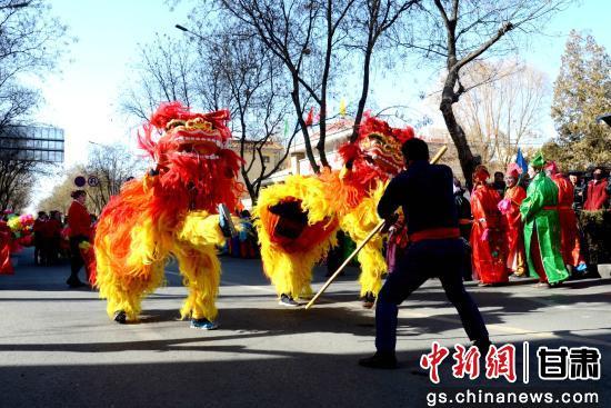 中新网甘肃新闻2月5日电 (马爱彬)灵蛇送福、龙腾狮舞、铿锵锣鼓……万民齐聚“耍社火”。2月5日,甘肃民勤县街头人潮涌动、热闹非凡,全县18个镇的社火表演队齐聚于此,各展风采,上演了一场文化与艺术完美融合的视觉盛宴,引来万人的围观,现场年味爆棚。