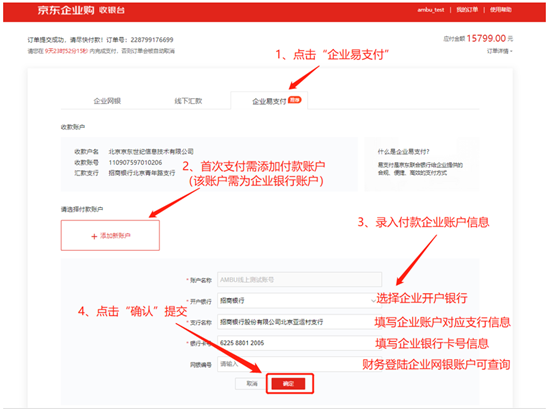 注:首次采购需绑定企业账户,之后默认选择已绑定账户(可换绑)。