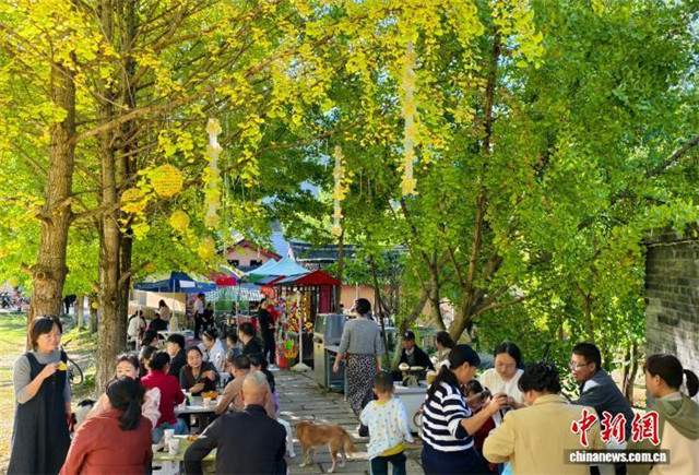 面对银杏观赏季节性强的特点,徽县委书记王福全介绍说:“我们以银杏为媒,不仅共赏山水神韵,更共促乡村振兴。”如今,田河村通过民宿、火锅集市等新业态,实现从“一季秋”到“全年游”的延伸;名优特产展、非遗文创、书画进景区等活动贯穿秋季,让千年银杏真正成为富民增收的“金色产业”。