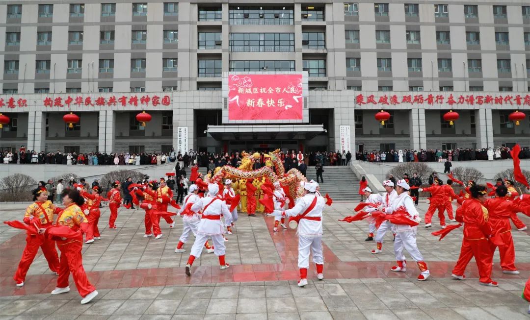 狮舞龙腾闹新春,社火秧歌庆新年。为进一步营造喜庆祥和的节日氛围,恭祝全市各族群众合家团圆、幸福安康,2月18日上午,“放歌新时代 谱写新篇章 欢乐拜大年”2024年新城区团拜社火文化活动在新城区政府广场热闹上演。