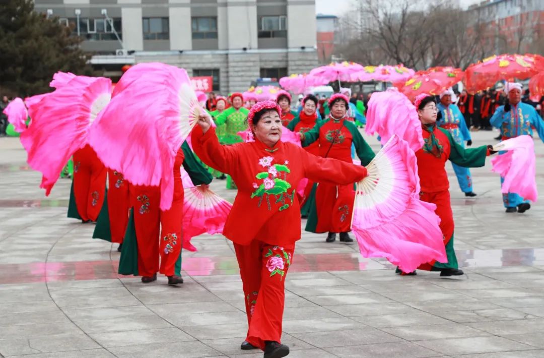 随着铿锵的锣鼓声,腰鼓队员腰系彩带,手舞红绸,秀出风采。大家和着欢快动感的节奏,跳出了新时代风采,展现了新城人的精气神。