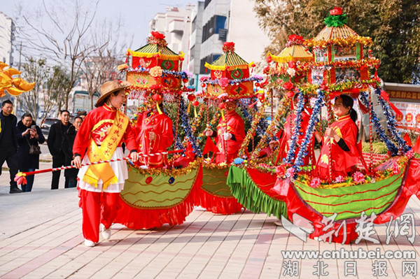 据悉,牌楼镇高度重视民间文化的传承与繁荣,目前有市级“非遗”项目2个,并建有一支150余人的民间艺术表演队。该团队是集舞龙灯、采莲船、十班家什、蚌壳精、海马子、吹锁啦、抬花轿、打大鼓、打腰鼓、歌舞、曲艺、小品等表演于一体,多次参加市、区举办的各种大型文化活动,并助力牌楼镇成功夺得“湖北省民间文化艺术之乡”的荣誉称号。牌楼镇民间艺术表演队已是丰富农村群众文化生活的有益补充,更是当地群众文化活动的生力军。