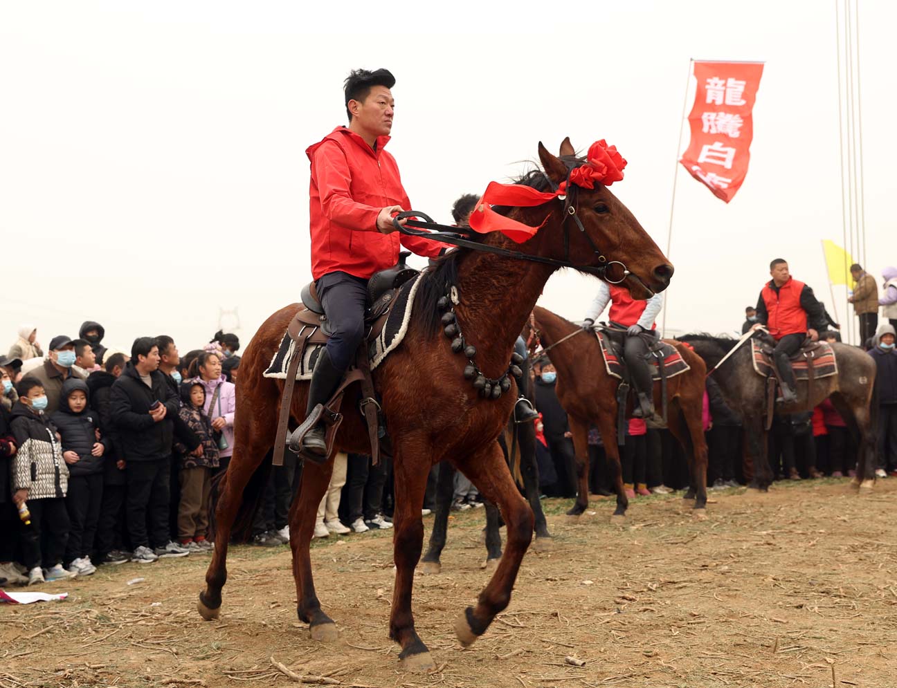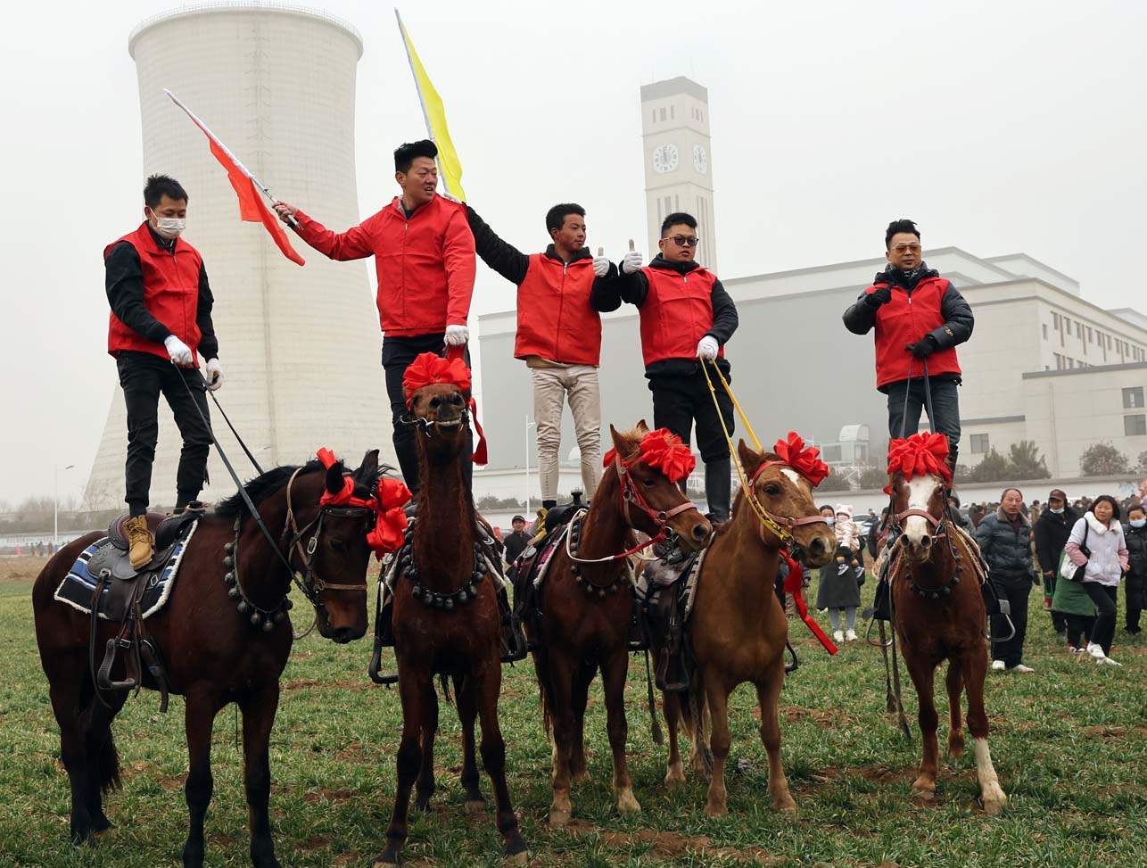 跟着人群穿过被小吃、小商品摊点串起来的“荒郊集市”来到一块空地时,从远处传来锣鼓声的地方彩旗招展,路上、麦地里、广场上,到处人头攒动,从身边走过的每个人脸上都洋溢着笑容。“王庄耍社火,还是20年前的事了,今年能把南原(白鹿原南部)上20个村社(行政村和自然村)的人聚在一起狂欢,确实不容易得很。”一位左臂戴着“安全员”字样红袖标的男子正在乐呵呵地和两位前来看热闹的中年男子交流着。