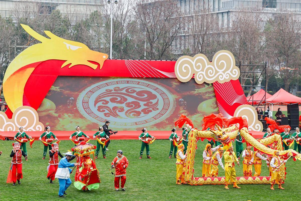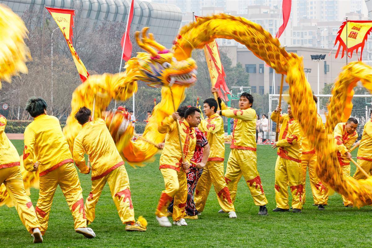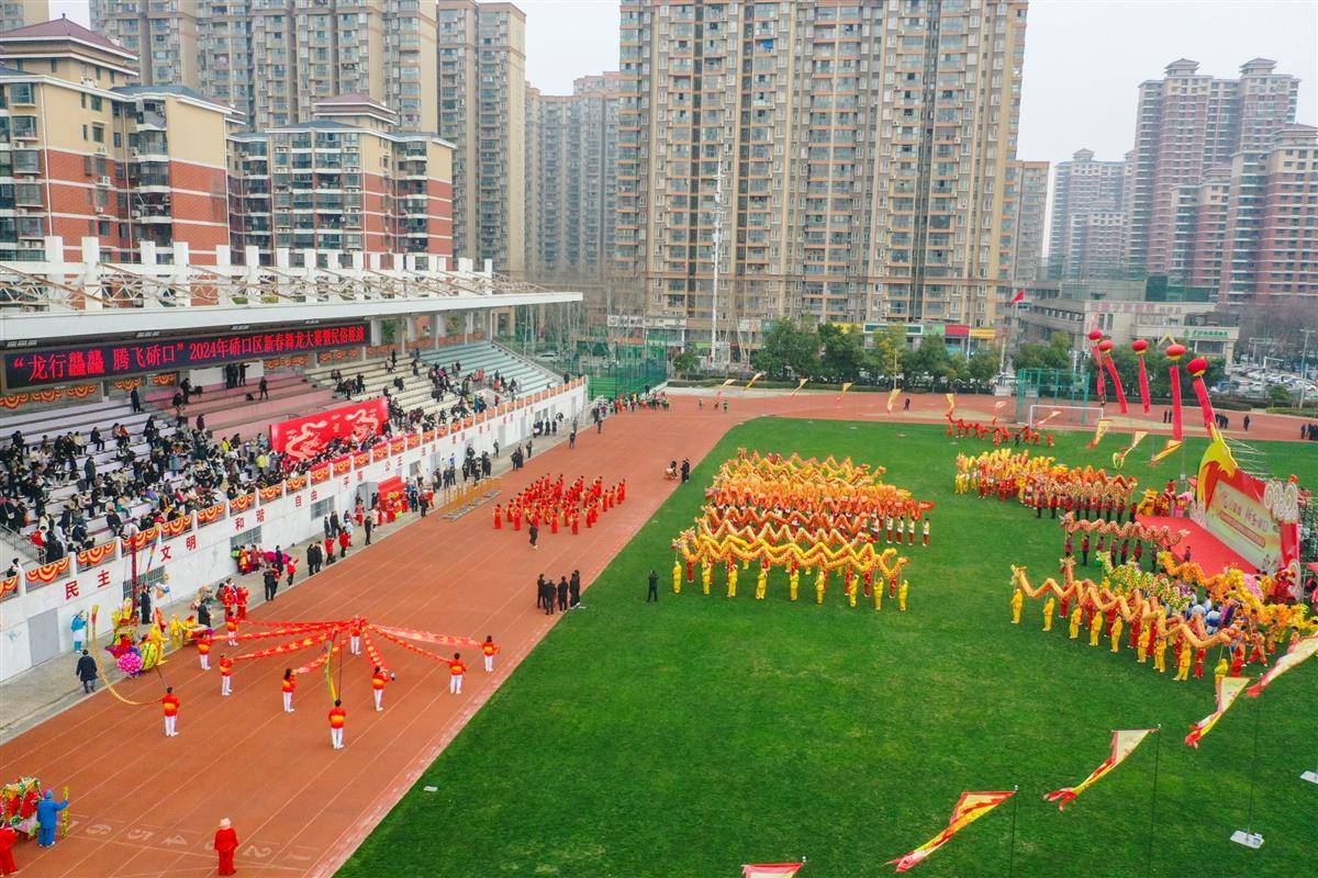 2024年2月19日,武汉市硚口区“龙行龘龘腾飞硚口”新春舞龙大赛暨民俗展演活动在武汉市第一职业教育中心体育场举行,来自该区11个街道的25支舞龙队,上演舞龙大秀,同时还有“采莲船”,蚌壳精、大头娃娃等民俗表演与观众现场互动,热闹非凡。