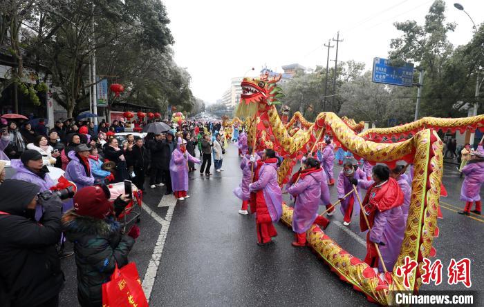 2月24日,正值农历正月十五元宵节,湖南省资兴市举行舞龙舞狮、猜灯谜、大头娃娃表演等年俗活动,欢庆元宵,丰富市民春节文化生活。