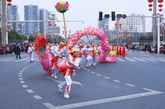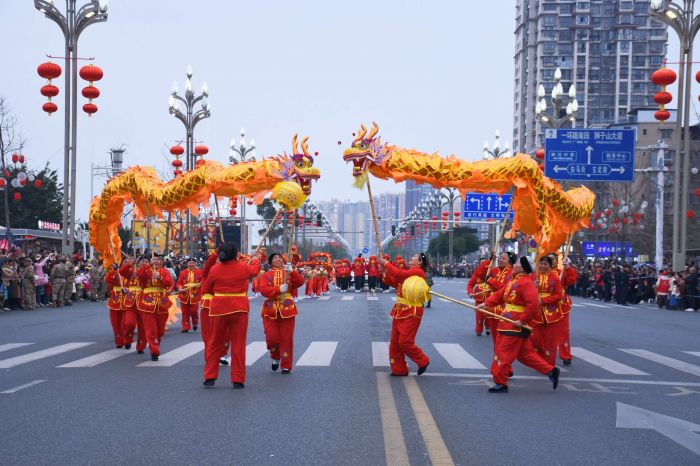 四川中江:民俗巡游“龙”登场 数万市民“闹元宵”