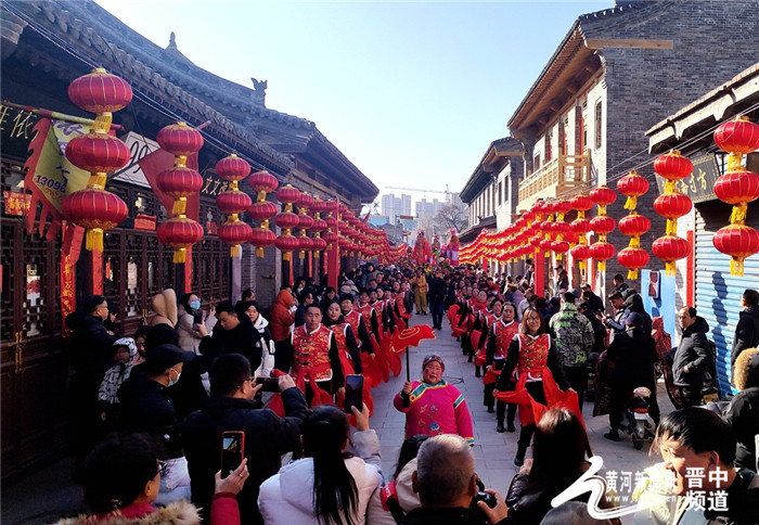 从农历正月初三开始,太谷区举办“逛古城 赏民俗 品年味”古城民俗表演活动,表演形式分为定点表演和社火巡游两种。初三至初九每天上午10点到11点进行社火巡游,从白塔到鼓楼往返巡游表演扭秧歌、背棍、大头娃娃、跑旱船、赶毛驴、地主儿等民俗社火节目,吸引了大量群众前来观看,喝彩声不断,饱含地方特色的民俗表演活动让“年味儿”越加浓郁。新春佳节,唱大戏是必不可少的春节传统民俗,太谷区文旅局精心策划,初三至初九每天下午在无边寺内进行国家级“太谷秧歌”演出,吸引了数万名群众前来观看,让文化惠民活动更加接地气、顺民意。