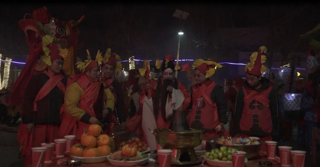 烟花鞭炮放起来,金锣鼙鼓敲起来。正月初八,太阳刚刚落山,一声声清脆的鼓点传来,徐家寨村一年一度的夜社火正式开演了。