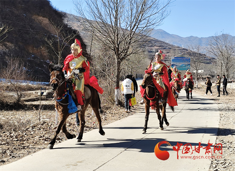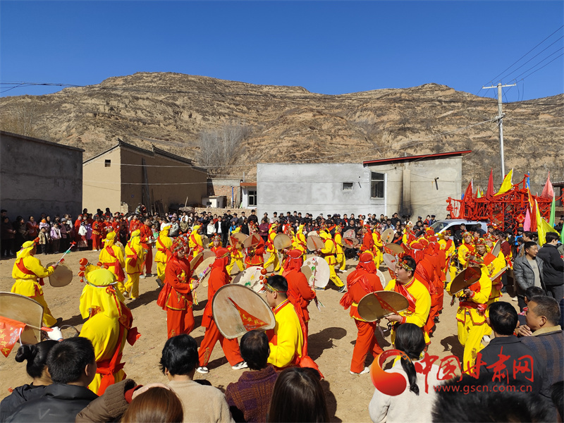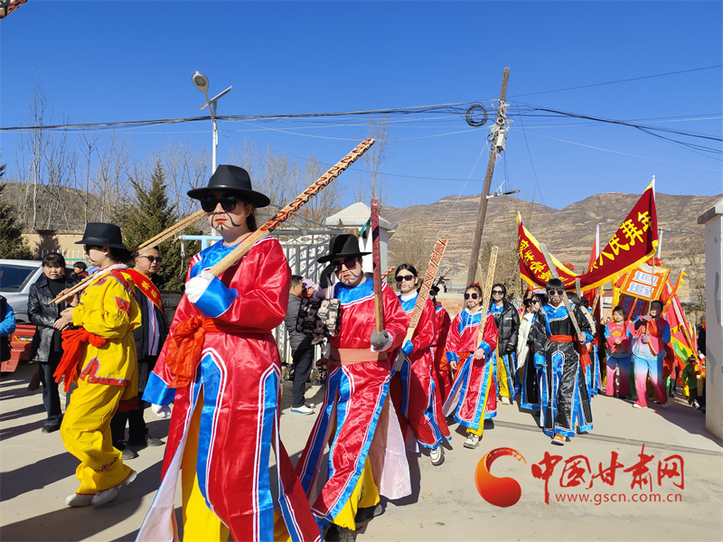中国甘肃网2月16日讯(西北角·中国甘肃网记者 狄东阳)“天气不早,请老爷上马!”2月16日(正月初七),随着春节秧歌队领队衙役的一声呼威,2024年武山县滩歌镇樊庄村的秧歌表演正式拉开帷幕。