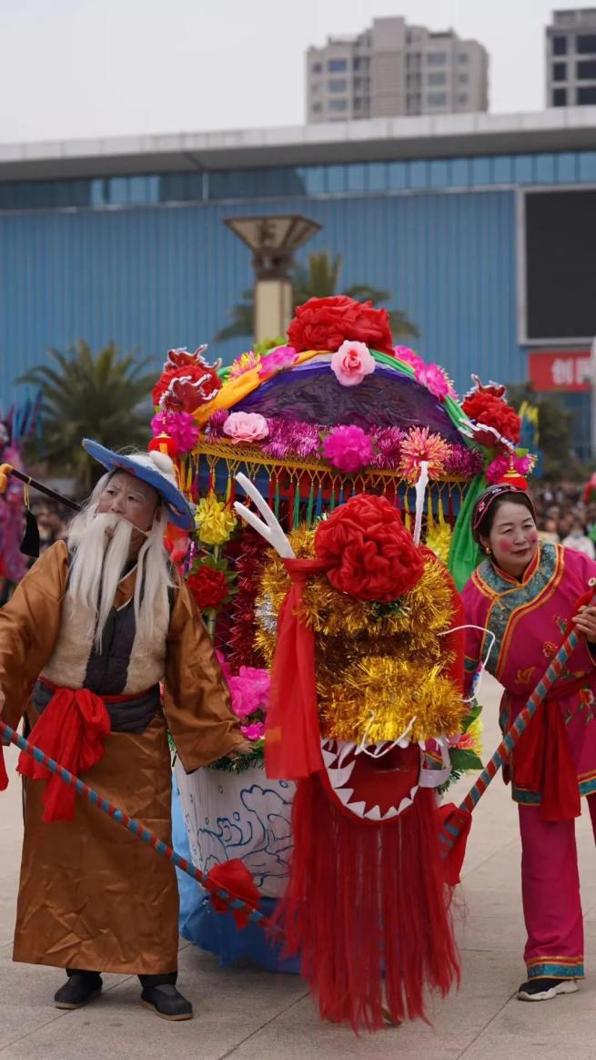 欢腾的舞龙舞狮、滑动的旱船、古老的踩高跷、热情的秧歌……伴随着欢天喜地的锣鼓声,身着盛装的社火表演队员们个个精神抖擞,你方唱罢我登场,踏着鼓点尽情表演,为广大群众演绎了一场民俗盛宴。