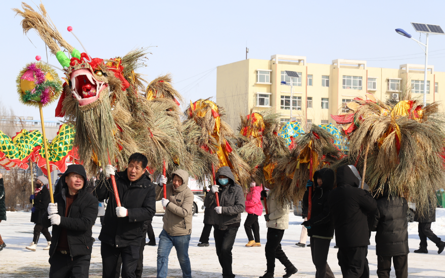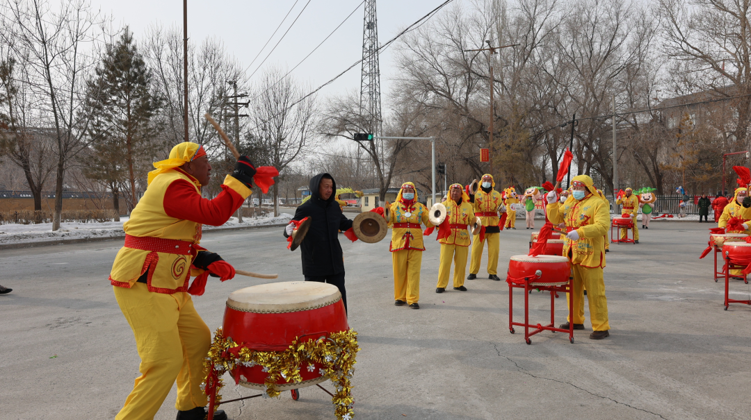 走进吉木萨尔县老台乡文化广场,广大文化活动爱好者排练舞龙、舞狮、二鬼摔跤、扭秧歌、打鼓等传统节目。演员们伴随着欢快的鼓点,或走或跳,舞动着手中的彩扇、长龙,一招一式饱含了对美好生活的热爱。