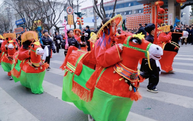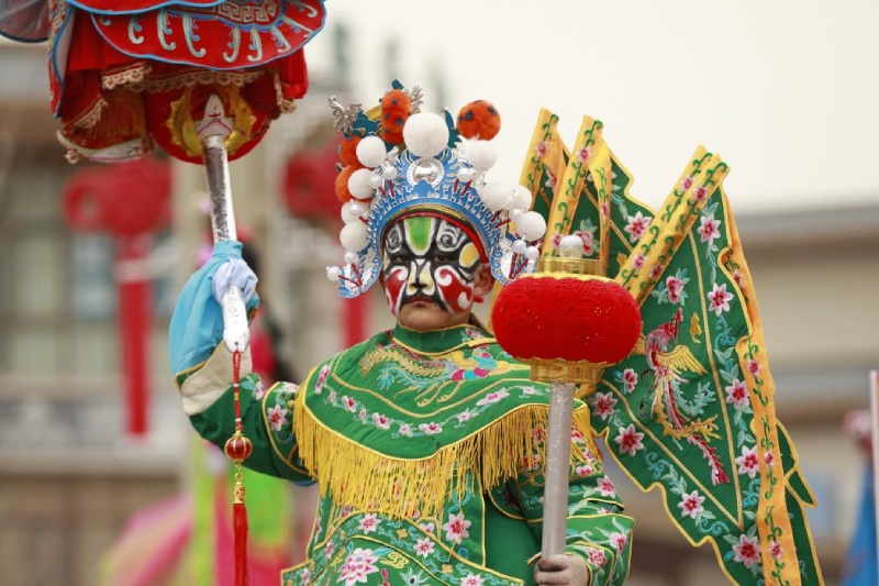 旱船演员在社火巡游活动中表演。陕西宝鸡凤翔区供图