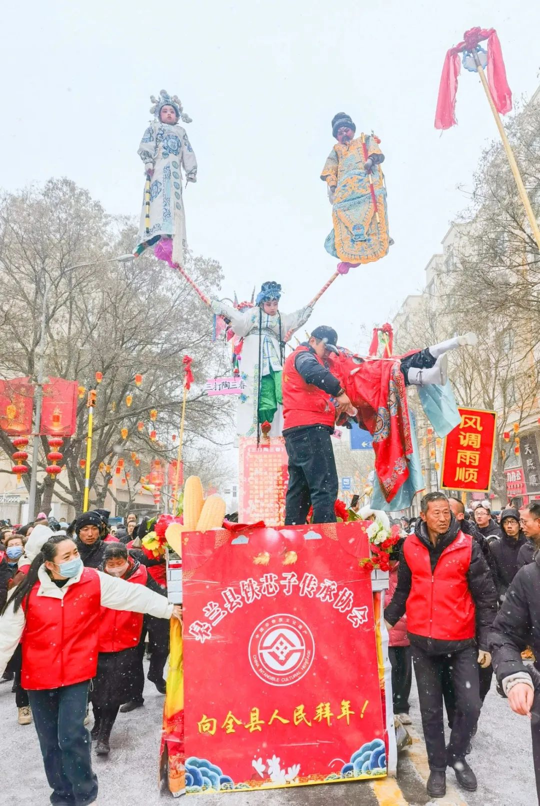静宁县举办了以龙年元素、神话典故、祈福纳祥、静宁苹果等为主题的彩车展演,还有舞龙、舞狮、腰鼓、打花鞭、春官说诗等民俗社火表演,让人目不暇接,为广大群众带来精彩绝伦的“元宵文化大餐”和浓郁的西北年味。