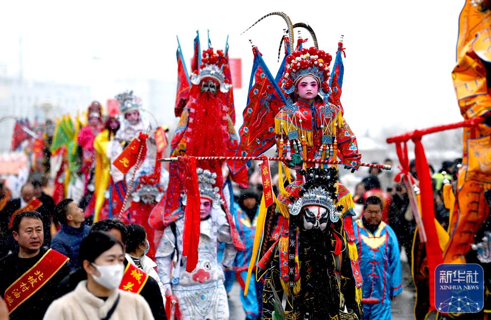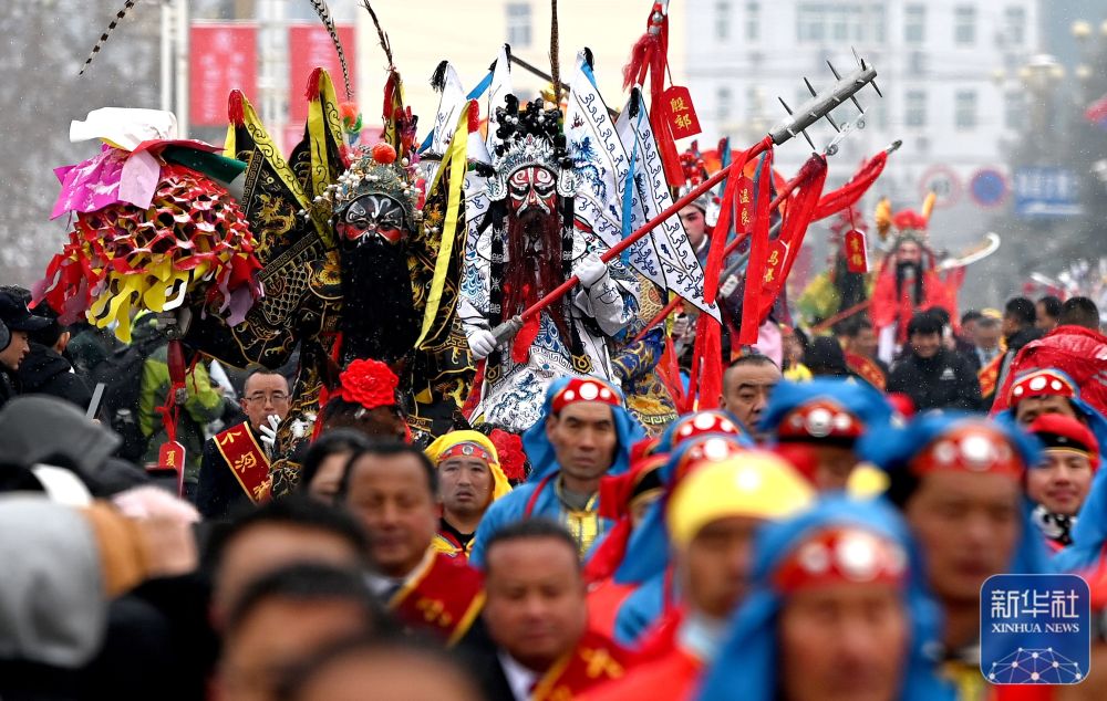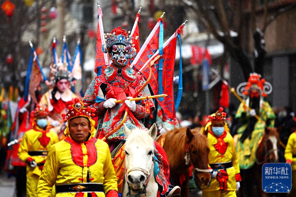 2月22日是农历正月十三,来自陕西各地市的民间社火代表队齐聚陕西陇县,进行社火展演及巡游活动。在陕西,每年春节期间人们纷纷装扮社火,走乡串户,进行拜年迎春游演。