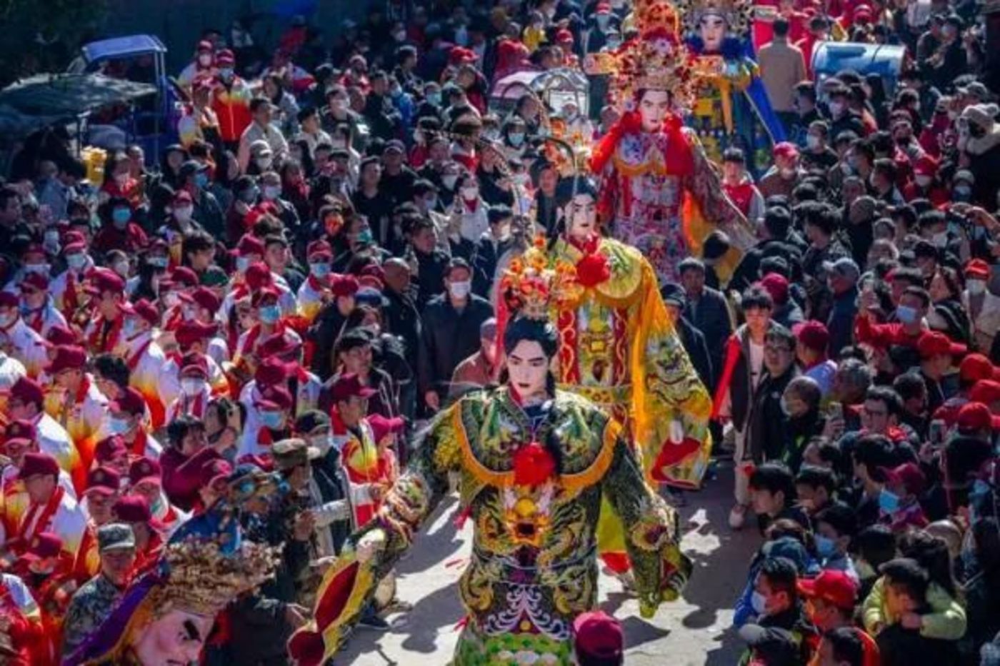 除了甘肃兰州的醉关公,西北大地上的社火活动接连不断。“2024年我们的节日——陇州社火过大年暨全省民间社火展演活动”在中国社火文化之乡——陇县举办。展演现场,西安市高陵区的竹马、宝鸡市眉县的威风锣鼓、安康市汉滨区的火龙、汉中市南郑区的高跷、咸阳市秦汉战鼓、延安市延川县的秧歌、渭南市富平县的老鼓以及陇县的地台社火接连上演。