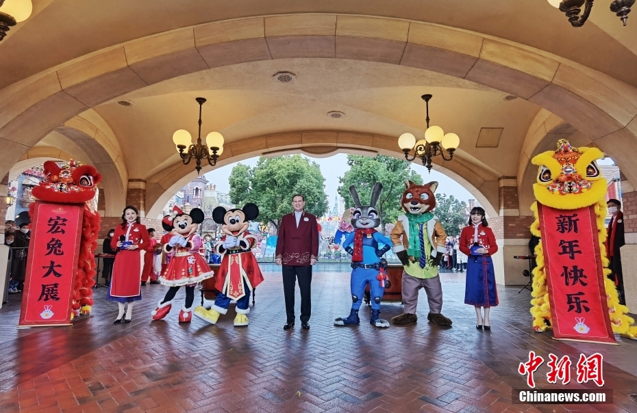 1月22日,农历正月初一,上海迪士尼度假区以中国传统瑞狮点睛仪式开启欢乐兔年。米奇、米妮携朱迪和尼克一起参加点睛仪式,传递欢乐与好运,与游客共庆奇妙团圆。春节期间,上海迪士尼度假区为前来欢聚团圆的游客准备了一系列精彩纷呈的特别体验,吸引了众多游客前来体验独具迪士尼特色的奇妙新春。图为游客在充满年味的上海迪士尼乐园拍照留念。 汤彦俊 摄