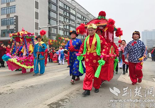 29支民间艺术表演队分别在城区、掇刀区主干道为市民带来精彩表演。本次演出内容包括秧歌、腰鼓、采莲船、龙灯、舞狮、蚌壳精、莲湘、大头娃娃、花棍、筷子舞、碟子舞、女子军鼓、威风锣鼓等等,同时融入快闪、街舞、旗袍秀等元素。