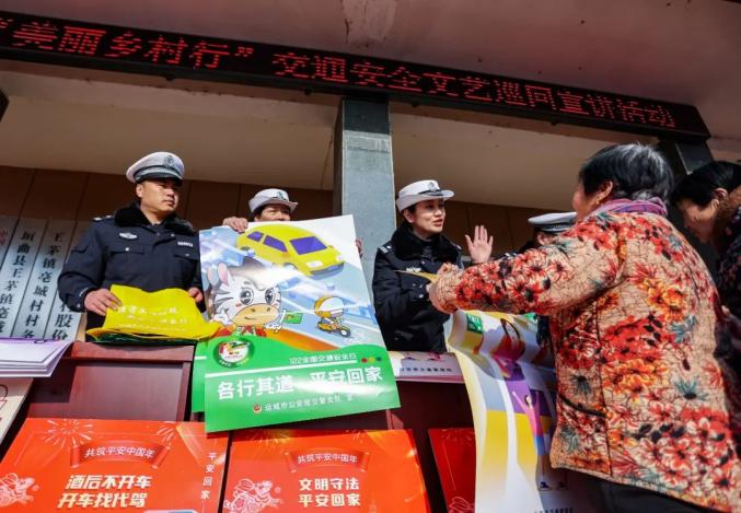 为进一步做好农村地区交通安全宣传工作,持续深化春运期间的“美丽乡村行”交通安全巡回宣讲活动,2月3日,由山西省公安厅交管局主办,运城市公安局交警支队承办的“美丽乡村行”,走进垣曲县元宵节社火文艺表演现场开展交通安全文艺巡回宣传活动。