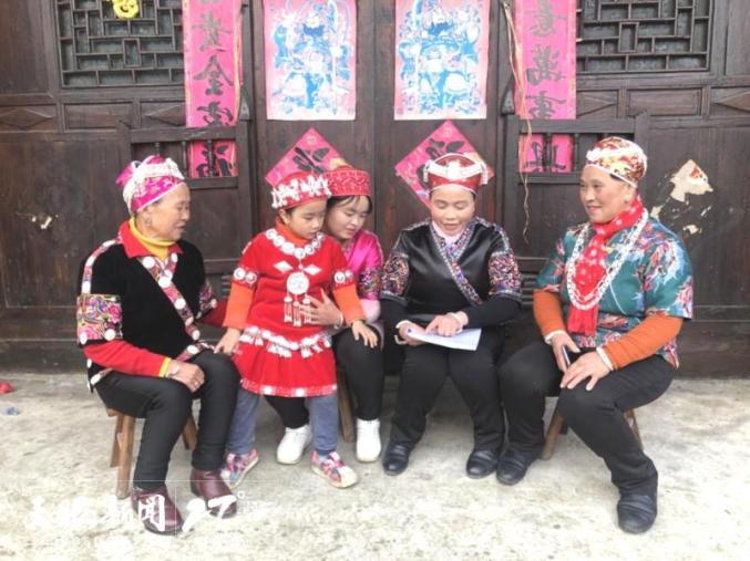 贵州省级非遗传承人王朝美(左四)在传授苗族古歌(资料图)