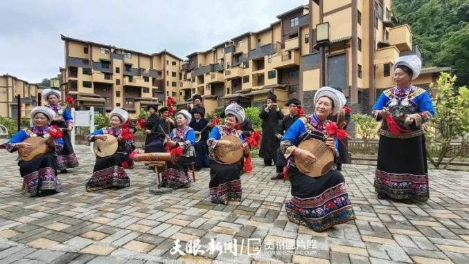 在册亨县冗渡镇,非遗传承人在易地扶贫搬迁安置点排练布依八音坐唱 叶方杰 摄