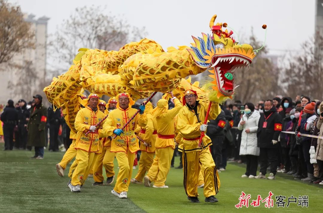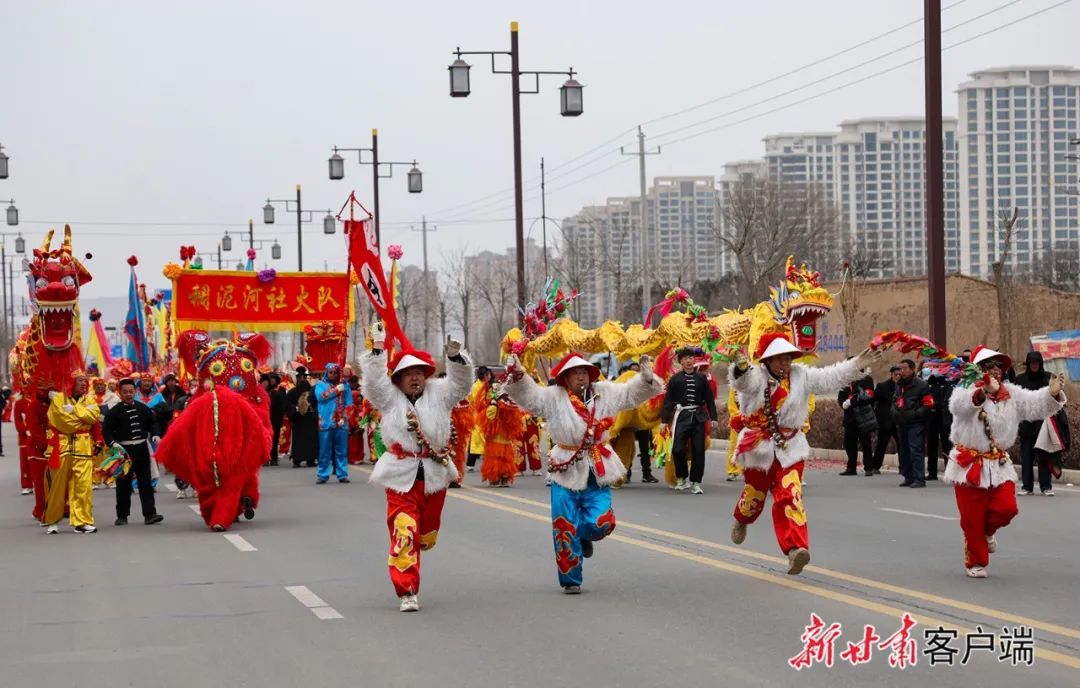 当日是农历正月十三,2024年榆中县迎新春社火调演在榆中县城举行。来自榆中县多个乡镇的15支农村社火队在县城进行舞龙耍狮、跑旱船、踩高跷、扭秧歌等民俗表演,吸引了众多市民前来观看,喜迎元宵佳节的到来。(新甘肃·甘肃日报记者 冯乐凯)