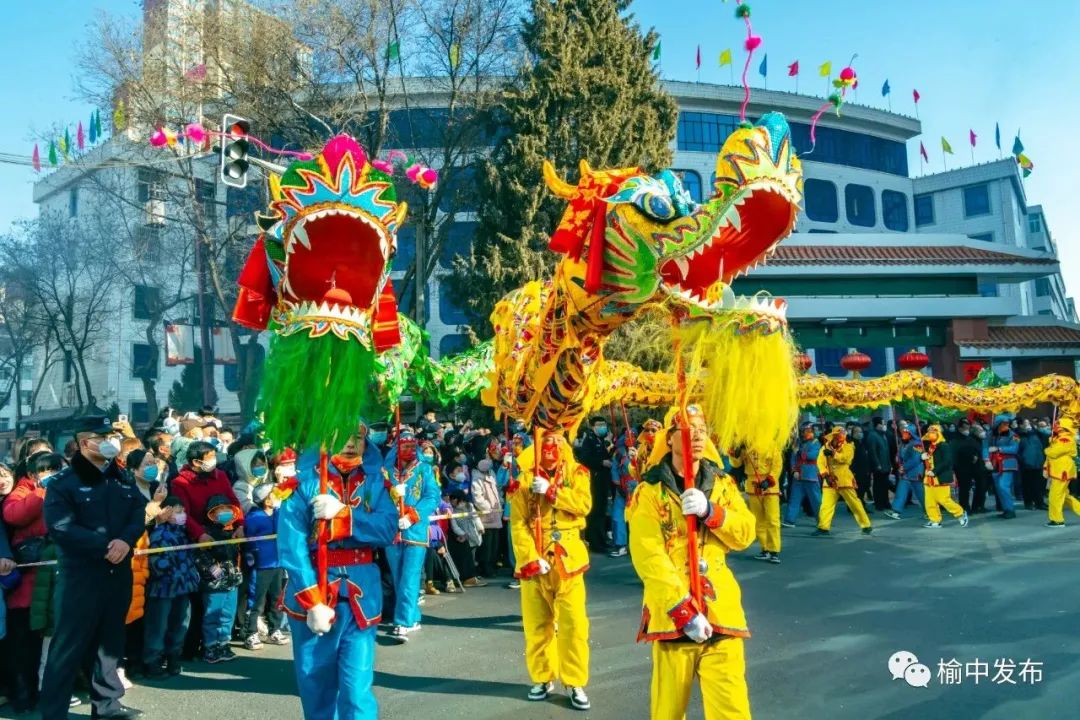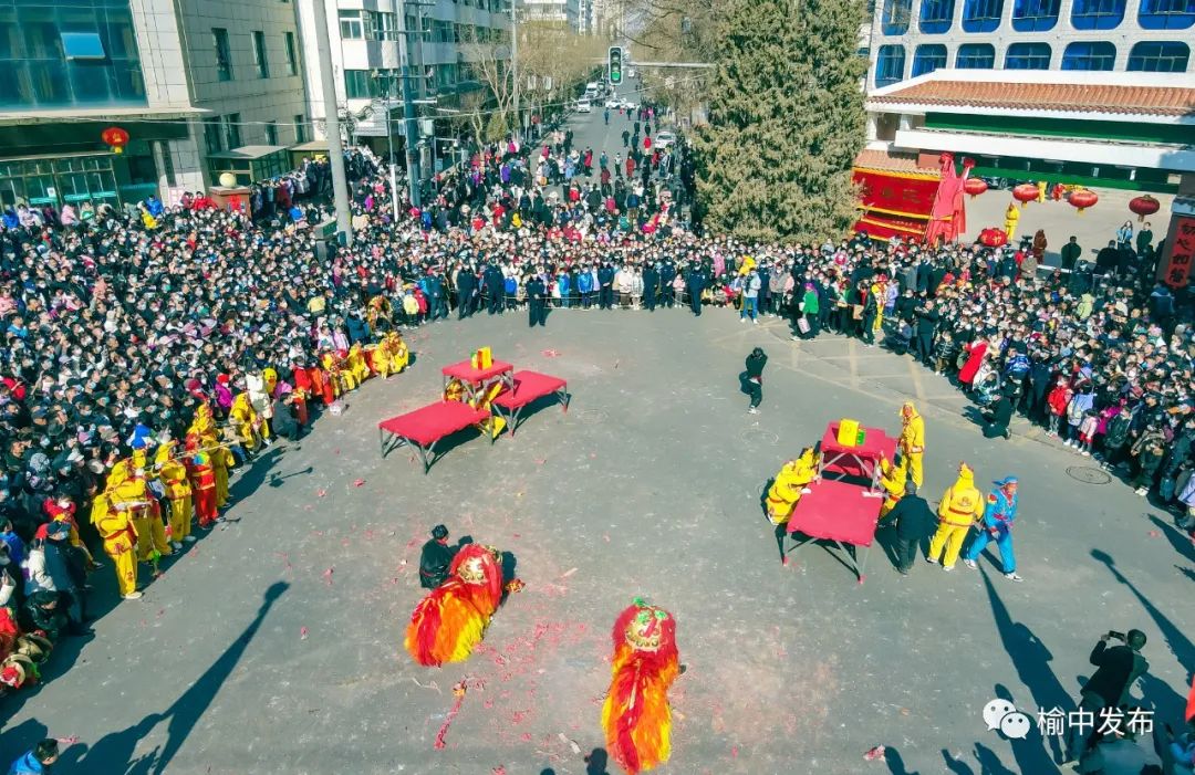 鞭炮声响、锣鼓喧天,打起腰鼓、扭起秧歌、舞起龙狮……热热闹闹红红火火的社火表演,把喜气洋洋、其乐融融的春节气氛再一次推向了高潮。真可谓:“元宵锣鼓震九天,城区社火闹新年。龙狮霍霍威风耍,欢声笑语喜气传。”