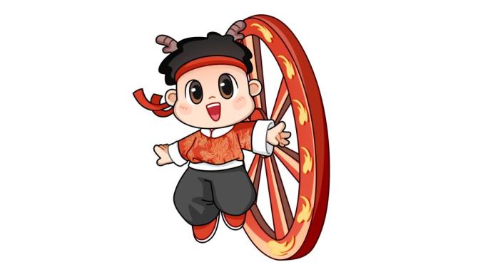 吉祥物被命名为“滚车童子”,他奋力推动着巨大的车轮,滚滚向前,奔向美好的未来。