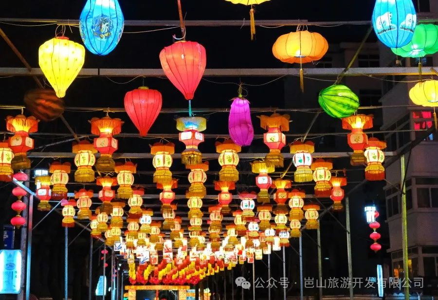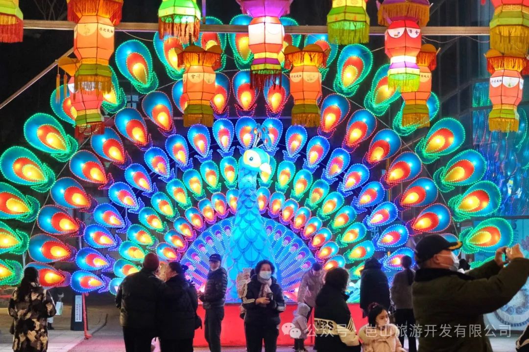 华灯初上,造型各异,融入了中医药文化、国潮元素等新春主题的岜山中医药健康旅游景区年味儿十足,灯的海洋更显璀璨韵味。
