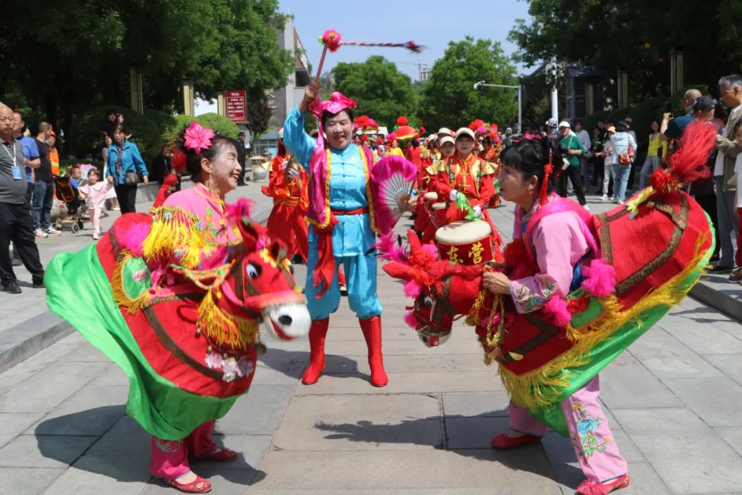 古城街道上,锣鼓喧天,热闹非凡。演员们个个身着明艳的表演服,精神抖擞、神采飞扬,令旗挥舞、锣鼓齐鸣,伴随着阵阵鼓点旋律,跑竹马、小丑互动等民俗表演为节日增添了一把“热辣滚烫”的氛围,让市民和游客尽情享受假期欢乐时光。